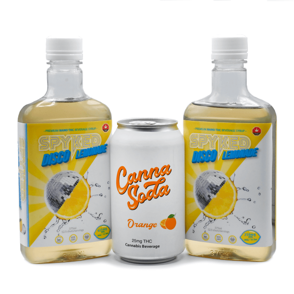 Description Beverages Mix and Match – 6 Pack Summer is coming! You can enjoy the heat while keeping things cool with CannaSoda THC Cannabis Beverage and Spyked Disco Lemonade. Stay cool with Cannasoda CannaSoda is a unique, lightly sweetened orange soda made with organic sugar, natural flavors and Nano emulsified THC. It facilitates the rapid absorption of cannabinoids to ensure you feel calming and restorative effects within minutes. With CannaSoda, you just simply pop, sip and chill with the great taste. CannaSoda was made in a GMP facility, contains high quality ingredients, and is perfectly suitable for vegans. Shake things up with Spyked Disco Lemonade SPYKED Disco Lemonade is a premium Nano THC syrup made with nano emulsified THC to facilitate rapid absorption at 3X times potency. With no synthetic chemicals or artificial sweeteners plus being vegan-friendly, SPYKED Disco Lemonade can be used to medicate your favorite beverages. Add SPYKED to any drink: stir, consume, then enjoy the ride. It’s BOMB for making awesome, refreshing summer cocktails. ***Due to increase shipping costs to weight and size from beverages. Some orders may be moved from Xpresspost to Flat rate box. Free Shipping over $99***