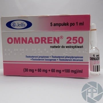 Omnadren 250 is an injectable steroid which contains the hormone testosterone in four different esters equaling a total of 250 mg. Each ML of Omnadren 250 contains the following: