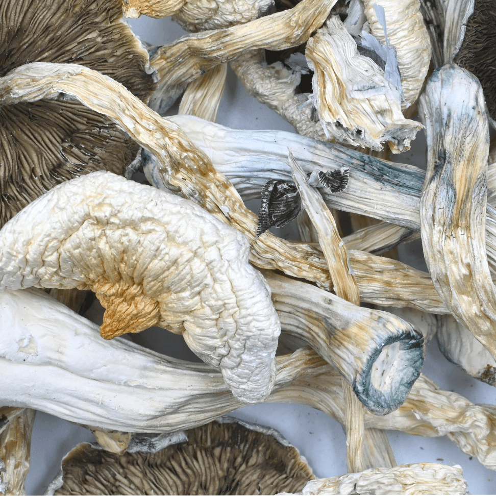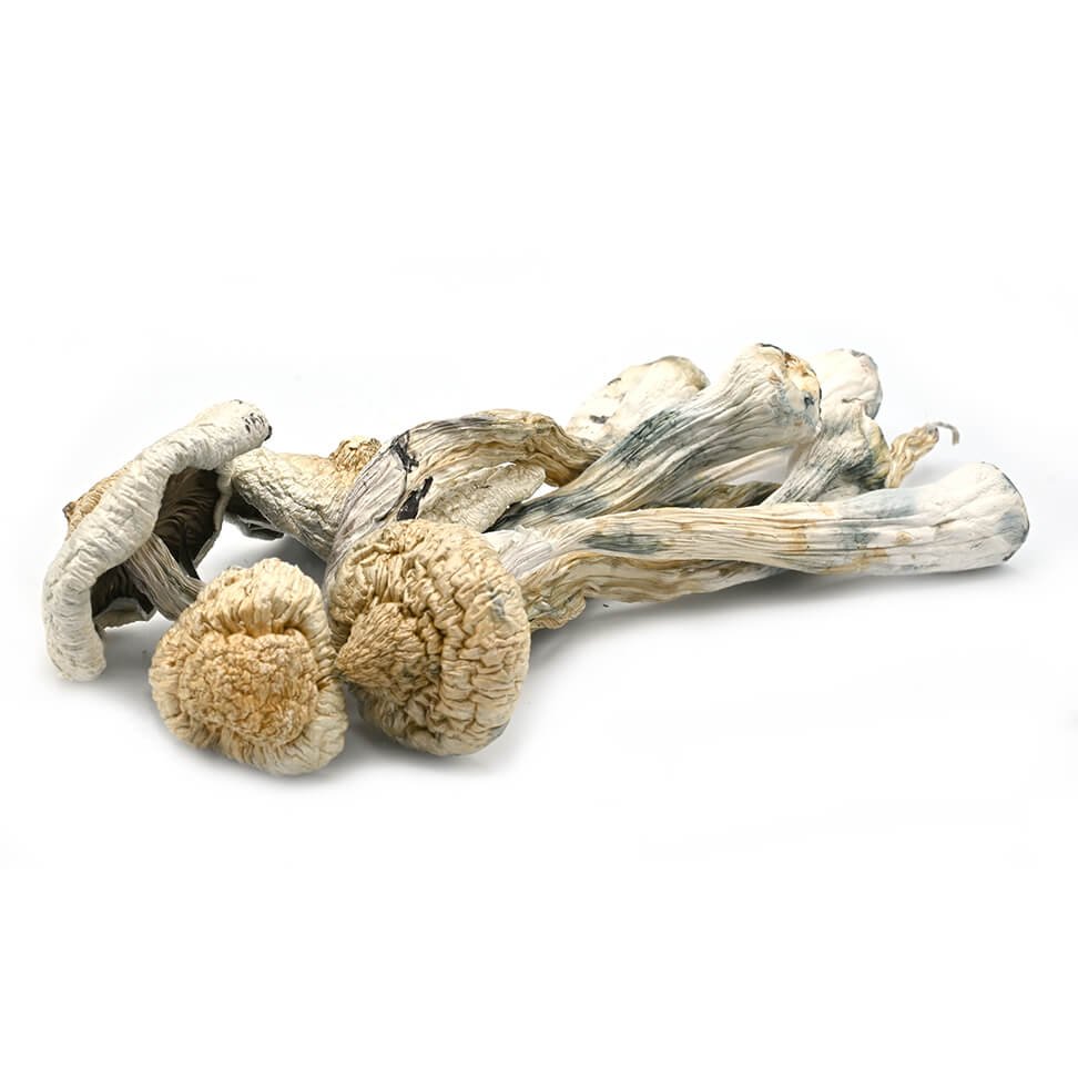 The origins of this magic mushroom strain are unknown. The “Great White Monster” is a mutant cubensis strain that is leucistic.