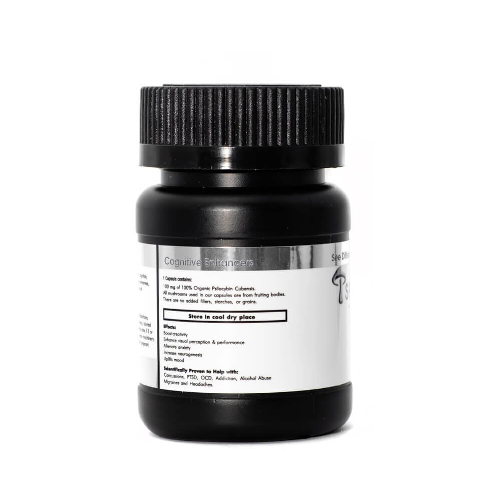 Ingredients – Each capsule contains 100 mg of 100% organic Psilocybin Cubensis. All mushrooms used in our capsules are from fruiting bodies. There are no added fillers,starches or grains.