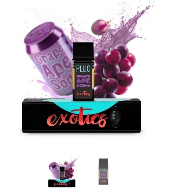 Buy PLUGPlay Exotics Grape Ape Vape Cartridge UK Online. Connect to your wild side with this addition to the Plug Play Exotic line. PLUGplay’s Grape Ape Soda Plug is a convenient cartridge that magnetically applies to the Play vape pen. Experience the delicious grape flavors of this pure, distillate oil. A few puffs of this Plug sends vibrant notes of grape soda that flows alongside a balance of cerebral and euphoric effects.